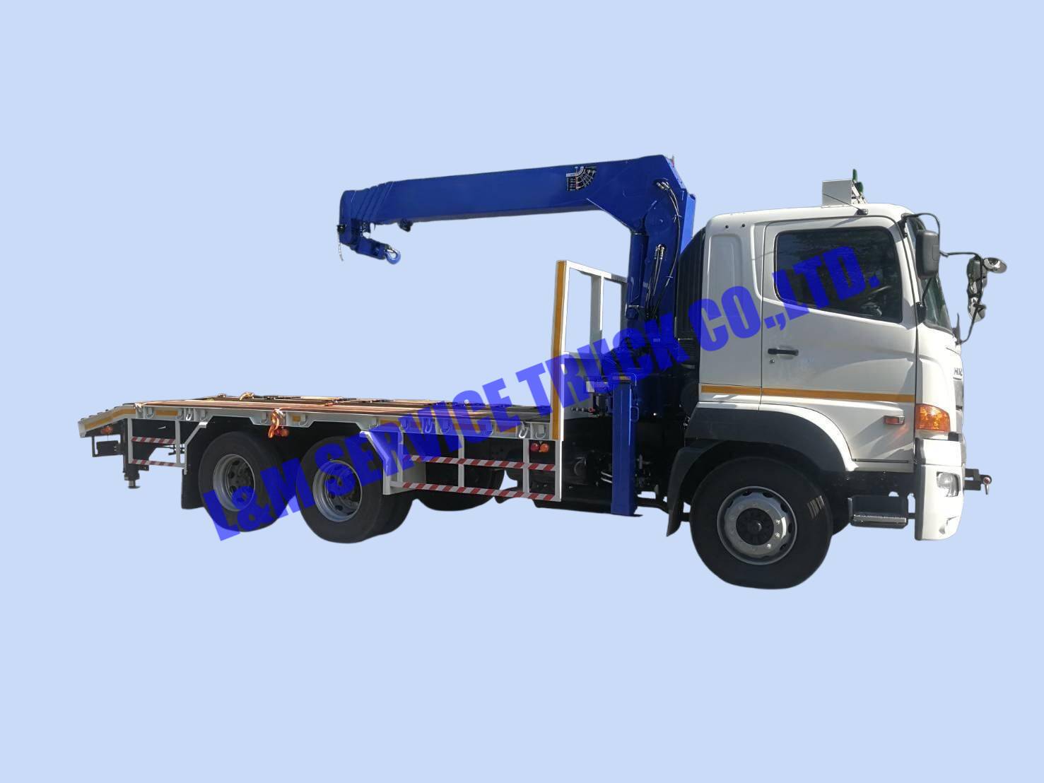 รถยนต์บรรทุกเครื่องจักรกลแบบท้ายลาด พร้อมติดตั้งเครนไฮดรอลิค